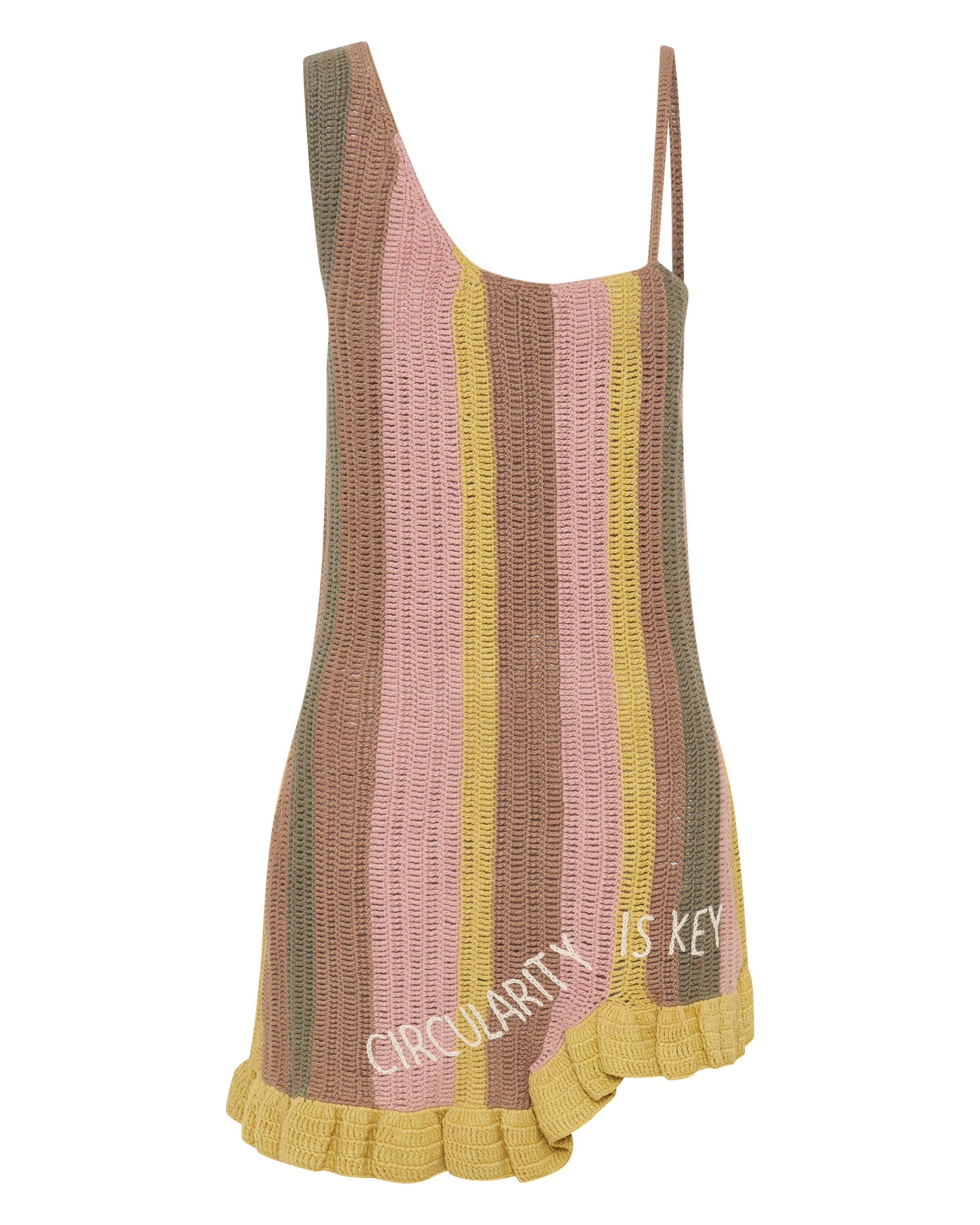 Hand crafted using 100% organic cotton, botanical dyes & traditional techniques - the Hand Knitted Dress takes 42 hours to complete. Finished with hand embroidery carrying our signature phrasing